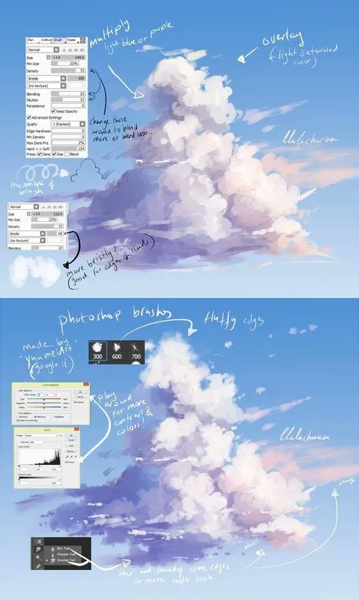 Clouds by lluluchwan Support the artist buff.ly/3LKI1wb #digitalart #arttutorial #digitalpainting #howtodraw #fantasyart #artclass #photoshop #art #artwork #speedpaint #artist #design #photoshop #tutorial #artstudy