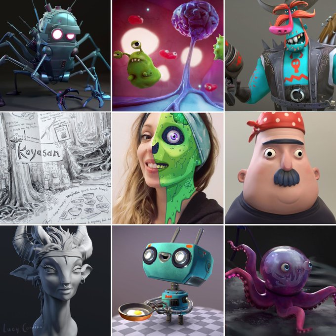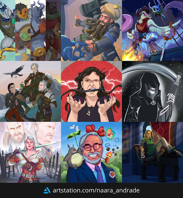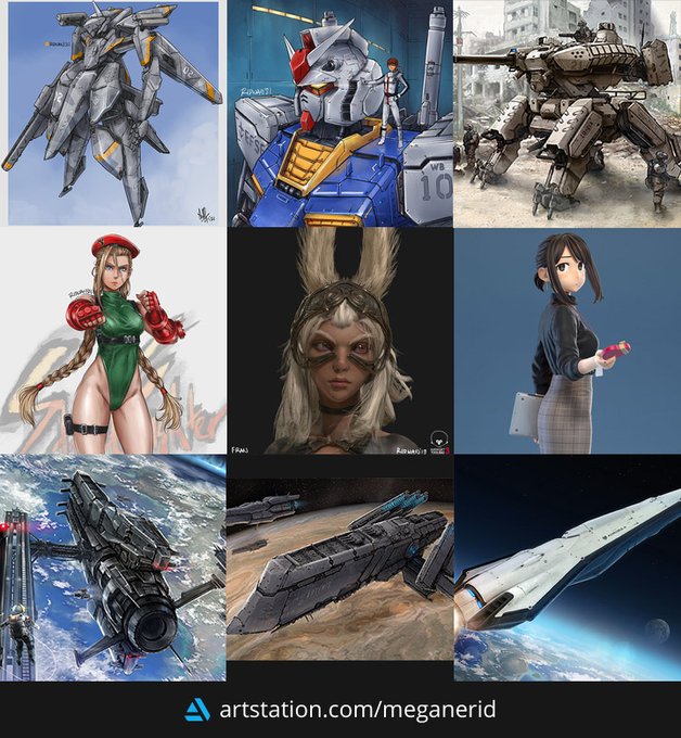 lol didn't know @ArtStationHQ provides downloadable template for sharing Anyway changed some to make it 3 different rows of topics I'm fond of. Happy #artstationday! :) #artstationday2021 artstation.com/meganerid