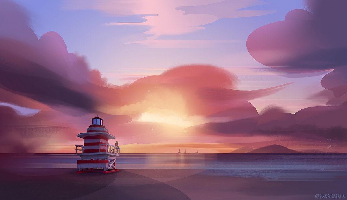 2017--->2021 ☀️ still painting sunsets on the beach 🌴😌 #artstationGlowUp #illustration #visdev