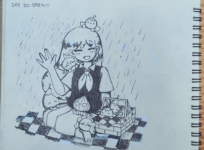 Inktober Day 20 :Sprout One of my most favourite locations in headspace is Rain Town. TheVeggie Kids are playing with Mari! #artwork #artwork #artstuff #myart #myartwork #myartstuff #inking #inktober #inktober2021 #inktoberday20 #OMORI #omorimari #omoriraintown