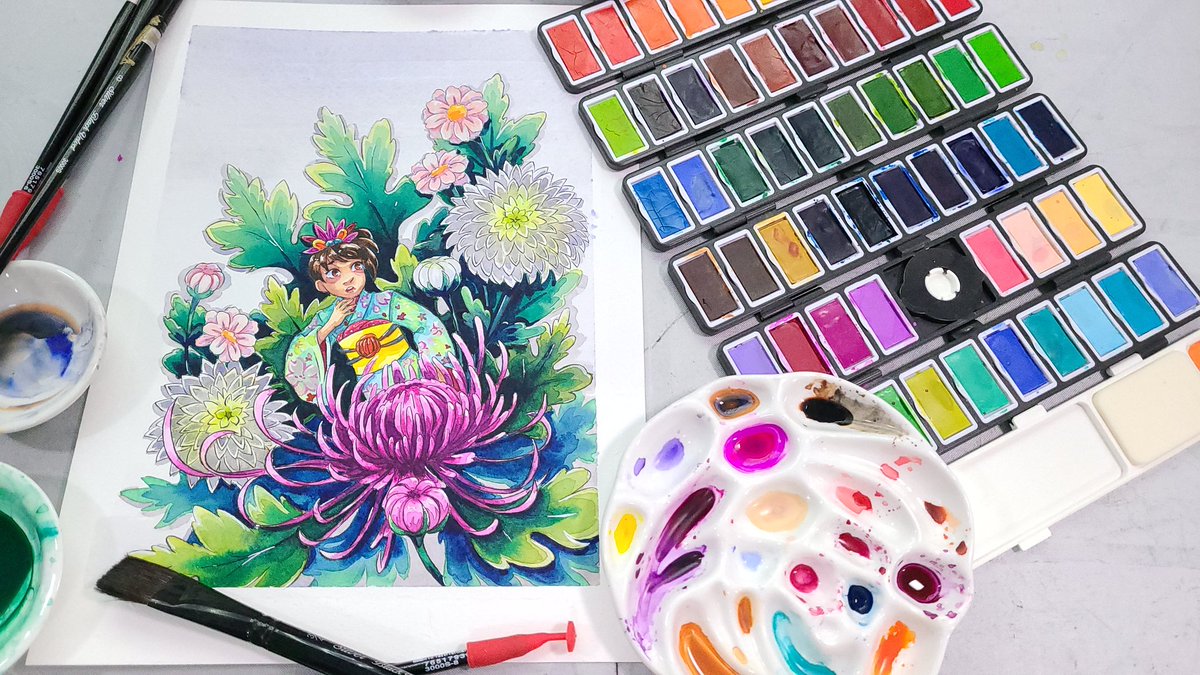 A concept I had for days now. Just pleased that I was able to finally put it on paper. I was more nervous to paint the flower than anything else 😂 My hand is not designed for floral strokes 🙊 #artsupplies #イラスト #水彩 #illustration #painting
