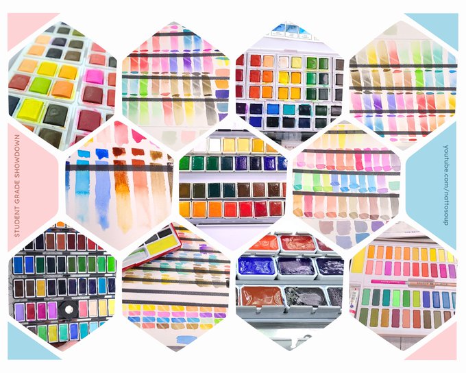 I've shared a lot of new entries in my ongoing Student Grade Showdown, and I figured it was time to share what's out as a thread! So if you're into cheap watercolor, I've got you! #artsupplies #watercolor