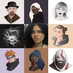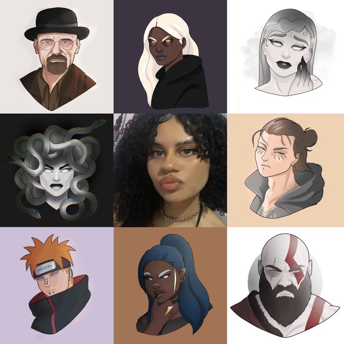 Sharing my #artvartist. Well, it was done in 2019 actually. All bar the top center were done for #PortraitChallenge. #artvartist2022 #ArtistOnTwitter #portrait #sketching