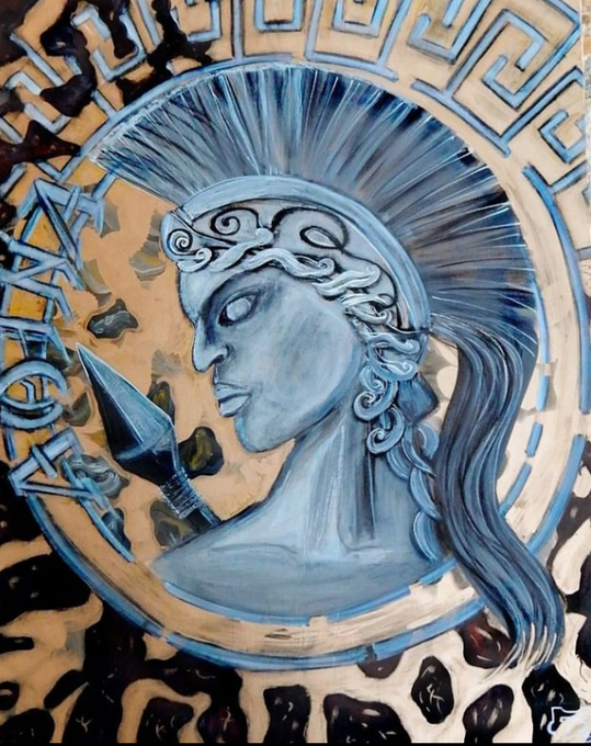 "GODDESS ATHENA" 70x90cm acrylic, pencil, white marker, bronze spray #artistvsart2022 #artvsartistchallenge2022 #artvsartistchallenge #artvsartist #art #Greece #tspainting #tsart #ts #artistsontwitter #acrylics #painting #artoftheday instagram.com/ts.world.desig…