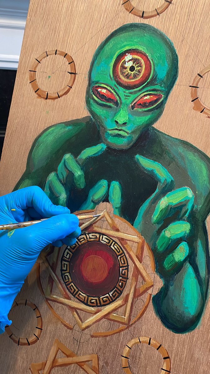 Progress shot of my current alien Painting 🖼️ 🎨 #acrylicpainting #artwip #WorkinProgress #artistsupport #ArtistOnTwitter #artstudio #characterart #characterdesign