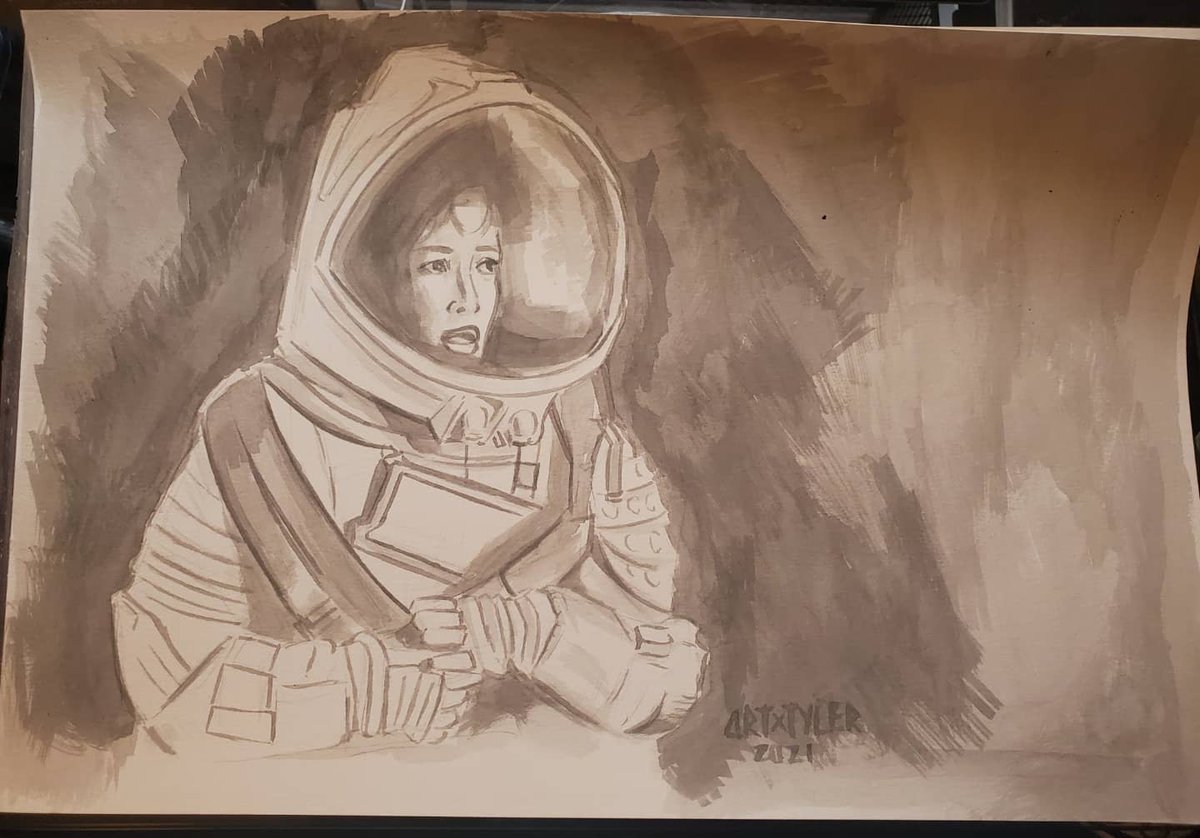 Day 15 "Helmet" 12" x 18" Inkwash on watercolor paper Alien -1979 #artxtyler #inktober2021 #inktober #alien