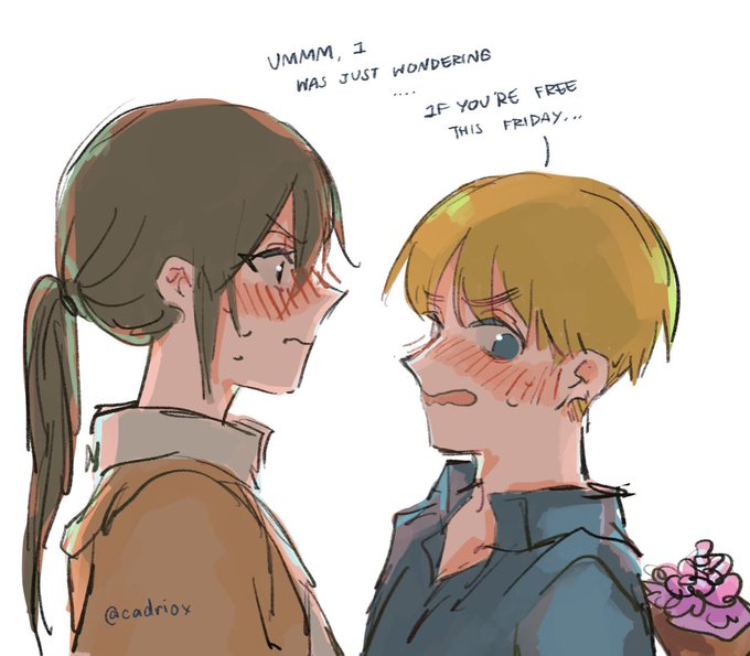 Termine! Creo que este tema queda muy bien con ellos, Eren sería un buen rey hasta que después no lo es (っ˘̩╭╮˘̩)っ #eremin #eremika #arumika #EMA #エレミカ #AttackOnTitan #inktober2021 #ShingekiNoKyojin