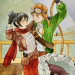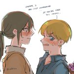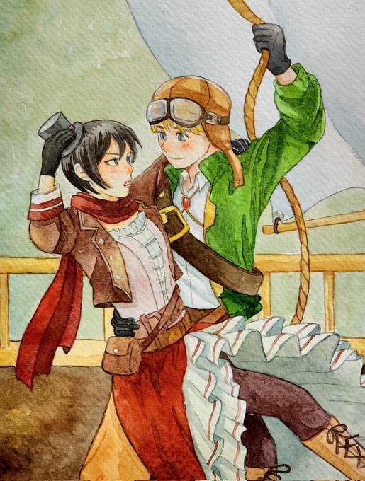 Commander Arlert: "Hello, the infamous sky pirate!" Red Ackerman: "...!" #arumika #watercolor Paper: degoya/fabriano studio Wacol: Holbein watercolor