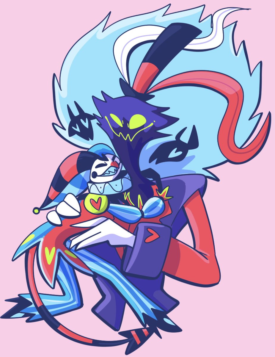 Thanks so much to @BunnyCrying and @GalacticPancak1 for drawing with me :) #HelluvaBoss #HelluvaBossFanart #FizzaRolli #asmodeus I’m blues , bunny is pink and Legato is black