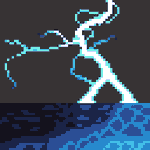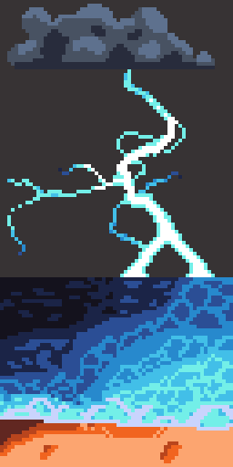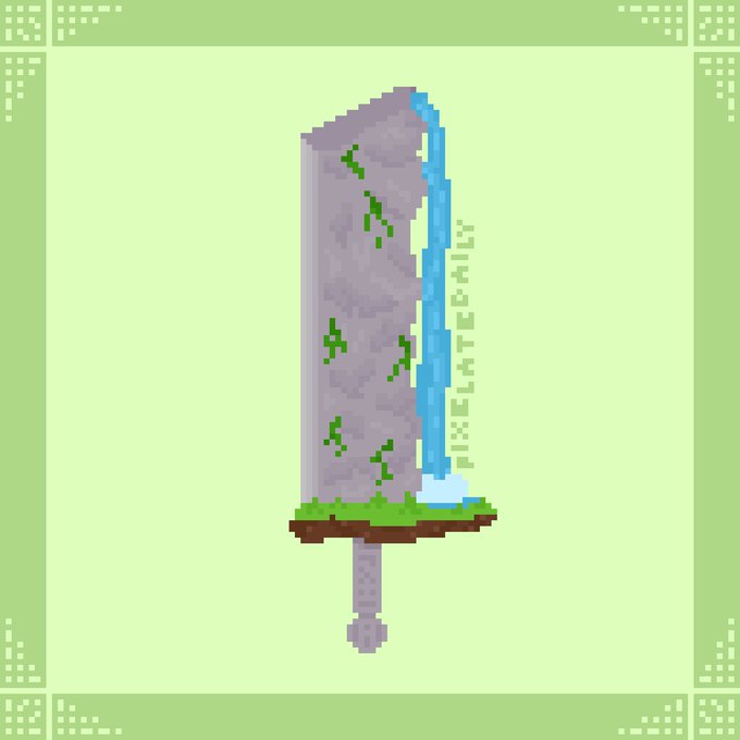 Daily No. 755: Cliff’s Edge. Another one in the series of most impractical swords possible. For today’s #Swordtember theme of Elemental. #asperite #pixelart #ドット絵 #swordtember2022