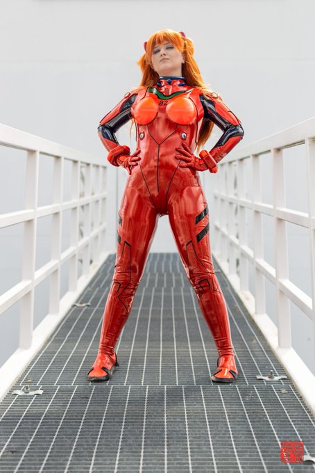 Baka Shinji. Everyone please take a moment out of your day to appreciate this shot by @FoodAndCosplay and also how shiny my suit looks, I can’t stop looking at it 😩 Suit by @AndromedaLatex #asukacosplay #AsukaLangleySoryu #Evangelion #EvangelionCosplay #latex #LatexCosplay