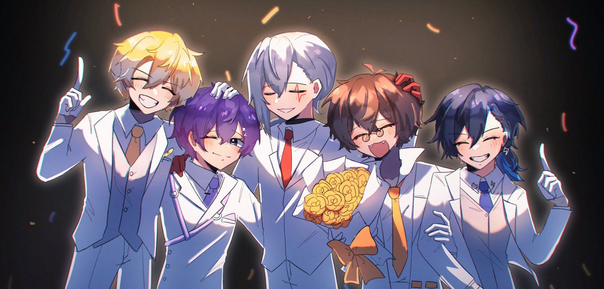 💛💜❤️🧡💙 Noctyx 1st Anniversary let’s go!!!!🎉🎉🎉 (My artist finish this before Yugo graduate…so anyway, hope everyone enjoy the artwork!🥰) #Noctyx #AlbanKnoxArt #Briskart #VioletAtelier #Artchivist #AsumaArt