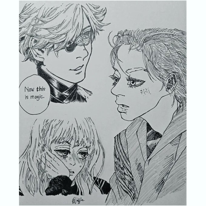 Back to the drawing pen practice I chose a manga with a certain style for me to redraw and this was unexpectedly fun. The dotted line is very satisfying to make #drawing #illustration #rkgk #animeart #fanart #atelierofwitchhat #kaijuunokodomo #oboreruknife