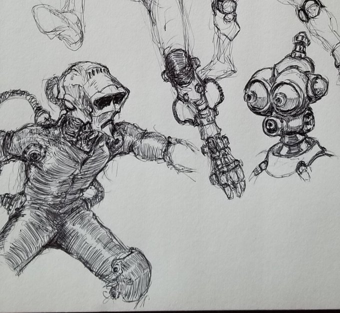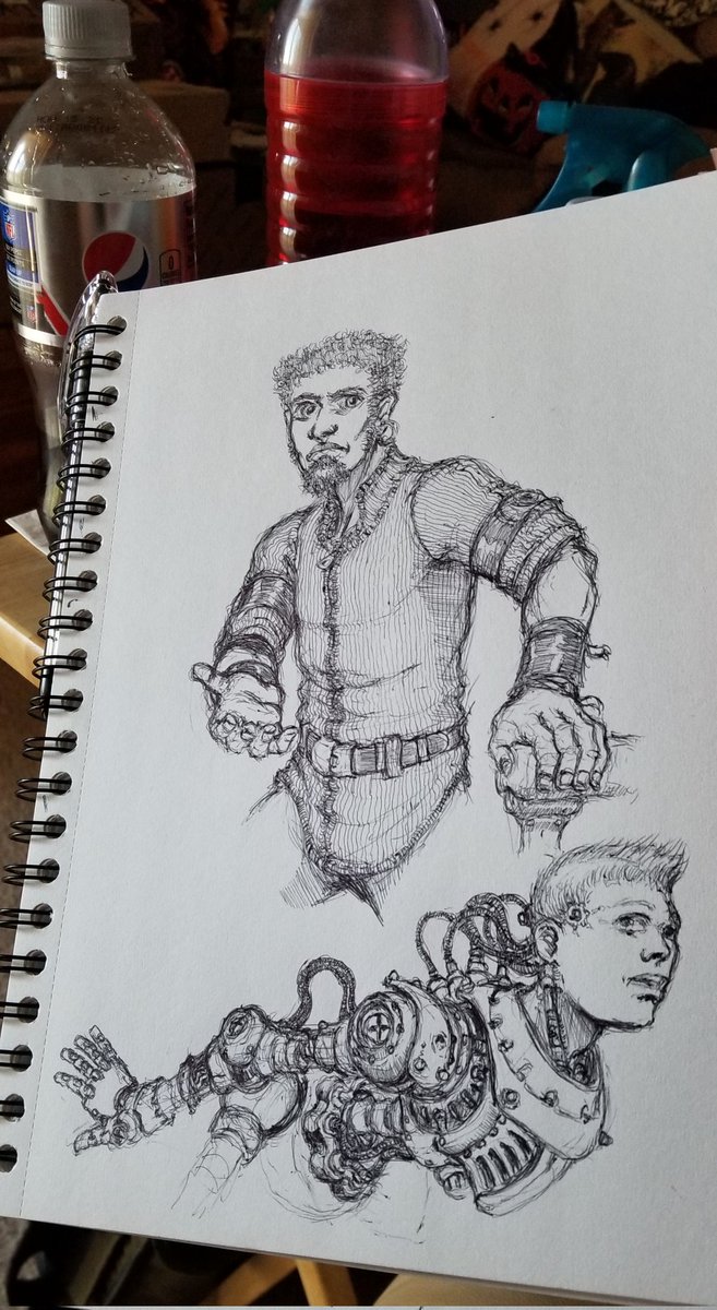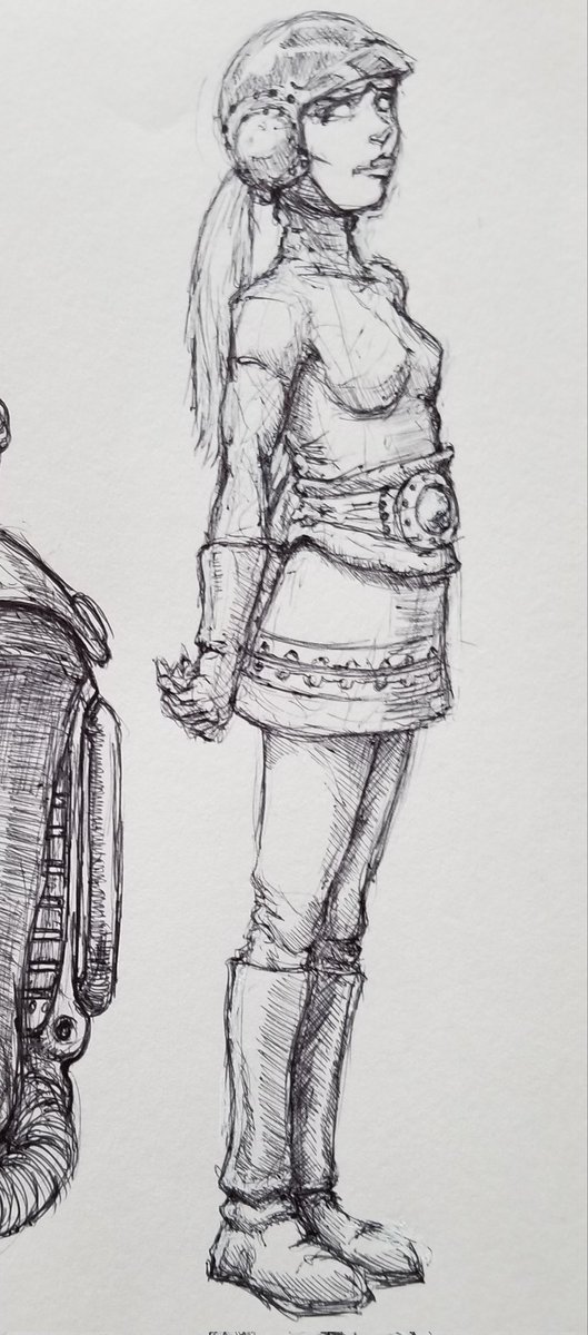 Managed a quick sketch between household tasks and sick people.😜#neonseedstudios #ballpointpensketch #pen #ink #inktober #roughsketch #characterart #nomad #steampunk #dieselpunk #raypunk #atompunk #art #artist #drawing #artistontwitter #artontwitter #artonpaper #dailydrawing