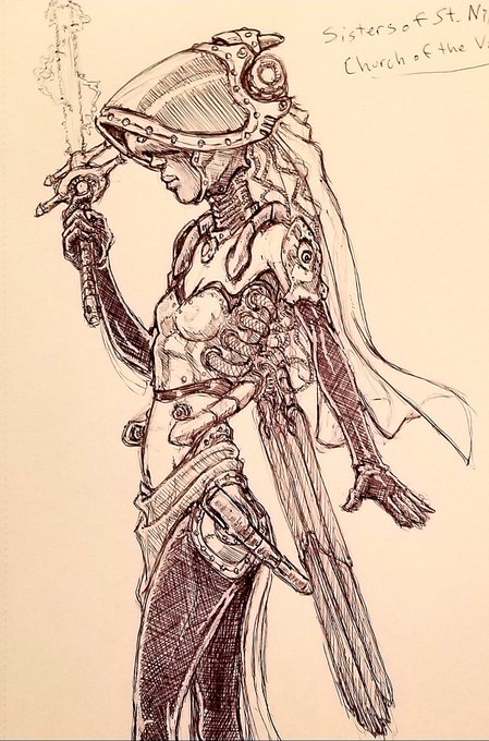 A Sister of the Order St. Nikola the High Engineer.🤓#neonseedstudios #steampunk #dieselpunk #raypunk #atompunk #conceptart #ink #inktober #ballpointpensketch #pensketch #cyborg #cyberpunk #fantasyart #sketch #art #artist #drawing #artistonfacebook #dailydrawing #darkfantasy