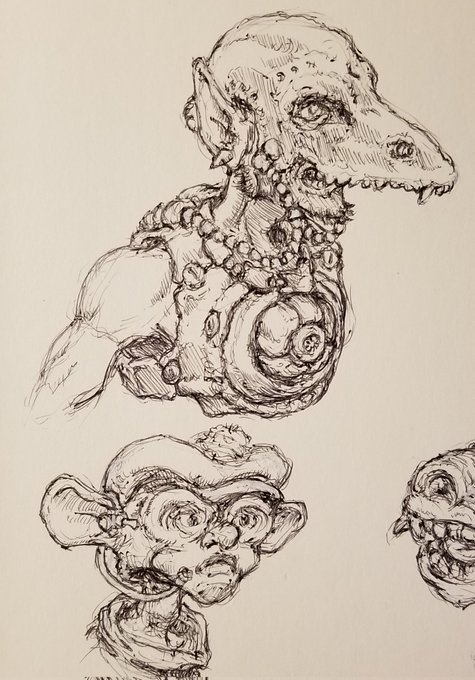 Mindless sketching to prevent burnout.🥴#neonseedstudios #inktober2021 #ballpointpensketch #ink #pen #inktober #horror #fantasy #alien #savage #steampunk #dieselpunk #raypunk #atompunk #charactersketch #ears #skull #art #sketching #artist #roughsketch #artontwitter #dailydrawing