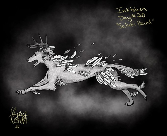 👻 INKTOBER 👻 Day 20: Saluki Hound 🐕 Saluki hound chimera of sorts for #Auctobre 🪶 Drawing one of these doggos in motion was fun enough, but why not add some feathers and antlers? . @ArtistRTweeters @rtItBot #digitalart #Inktober #inktober2022 #ArtistOnTwitter #originalart