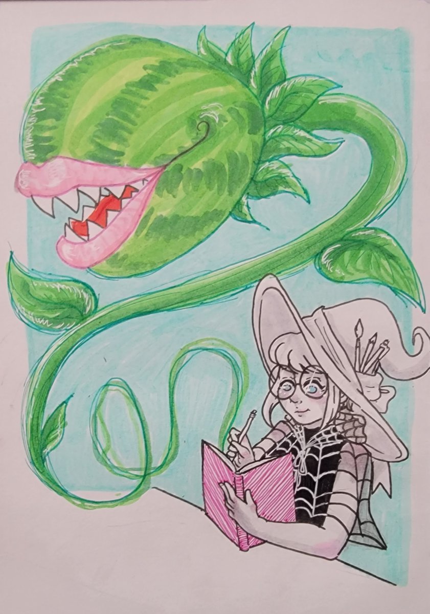 Day 9 of #Inktober2022 - Artist Witch AND Man-Eating Plant Damn insta loving their ties this year. Artist Witch who uses her pens and pencils as her wands and uses them to bring art to life. #littleshopofhorrors #inktober #artist #AudreyII