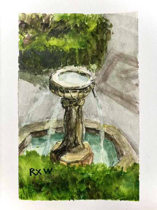 La fontaine du monastère de Cimiez,watercolor,21 x 14.8cm🎨⛲️❤️❤️❤️ 常去愉快的度過中午或下午的地方,就好happy!😊😄 #painting #watercolor #sketch #watercolorpainting #art #life #happyness #autumn #automne #paysage #landscape #水彩 #風景 #スケッチ #絵描き #秋