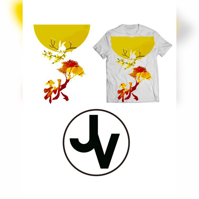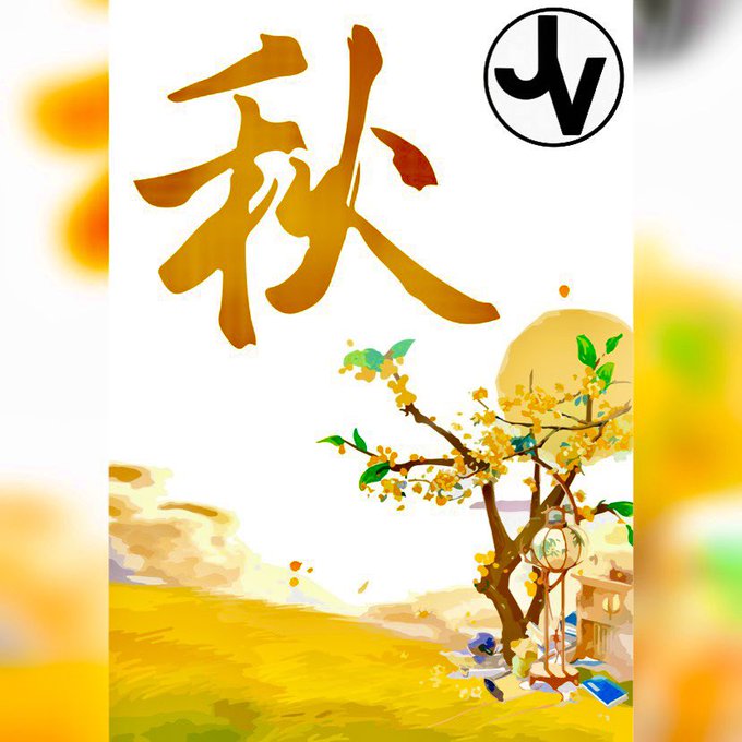 A large semicircle of a moon with a rabbit sitting on a tree branch filled with a color variation of yellow leaves, while a reddish orange tree formed a kanji letter. #autumn #autumnday #autumndays #autumnseason #autumn2022 #art #artist #artwork #digital #digitalart
