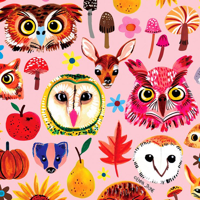 Woodland friends. I saw a few beautiful owls last weekend. They're actually amazing to see for real! 🦉🍁#autumnvibes #autumn2022 #surfacepattern #owls #birdsofprey #autumnanimals #illustrator