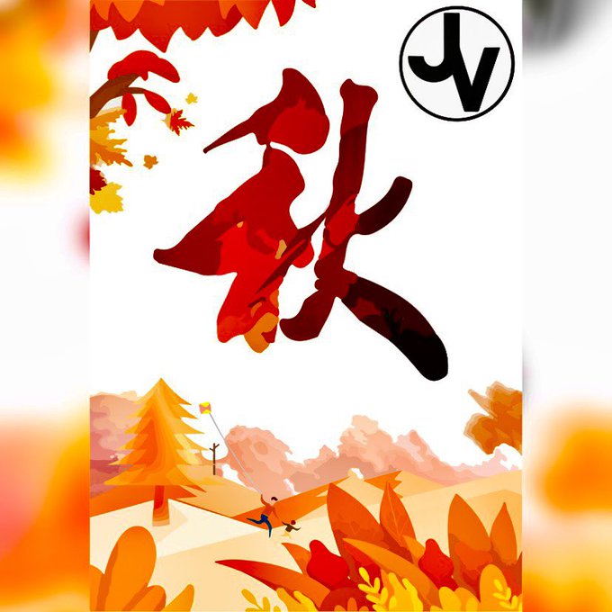 A meadow filled with a bunch of objects lying from the side of a tree (soft orange leaves) and a large moderate orange kanji letter. #autumn #autumnday #autumndays #autumnseason #autumn2022 #art #artist #artwork #digital #digitalart #digitalartwork #illustration #illustrator