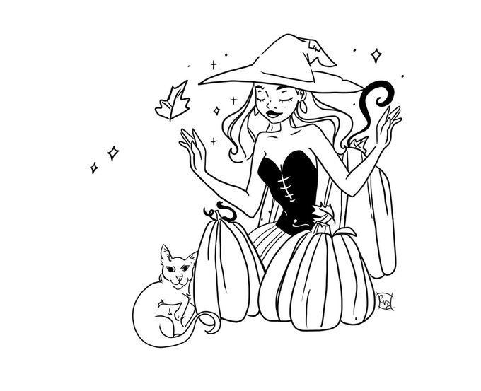 Happy #spooktober day 3 here I‘m drawing a little #pumkinwitch with here cat. #drawloween #ArtistOnTwitter #autumnart #Autumnvibes #inking #inktober #darktober #Halloween #halloweenart #portrait #witchtober #witch #blackandwhite