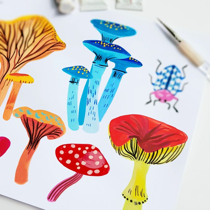 It's great this time of year to go mushroom hunting and wanted to share a couple of photos of fungi I took at the weekend. I painted these not that long ago, although they seem appropriate for the current season 🍄 #mushroomhunting #mushrooms #drawings #illustrators #autumnfall