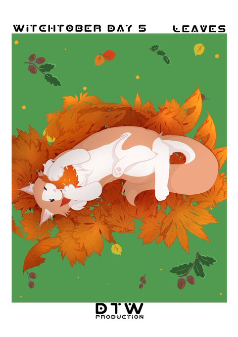 aaaaand another one xD Was on a roll and its cute. i take it #inktober2022 #witchtober2022 #leaves #cat #eevee #eeveethecat #autumvibes #digitalart #digitalartist #artwork #art #artist #illustration