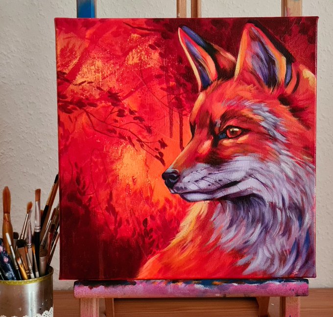 Autumn Foxy done 💛🧡❤ #artistsontwitter #painting #oilpaintings #wildlifeart #fox #foxlover #autumvibes