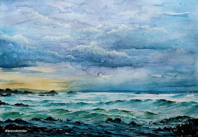 The sky above a distant shore. My latest #watercolor work. #art #artist #watercolour #painting #available #arte