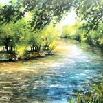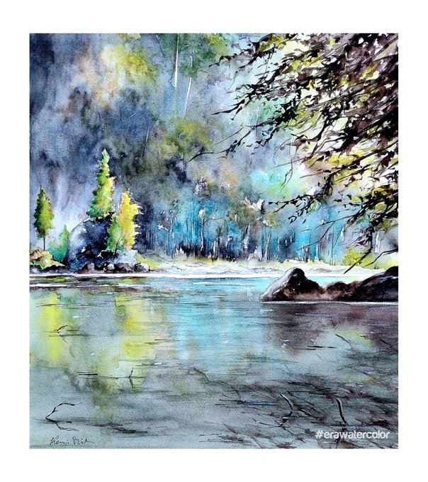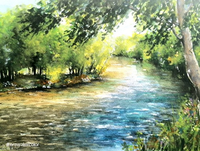 Under cool foliage. My finished new #watercolor. #art #nature #ArtistOnTwitter #Available #painting #summer #green