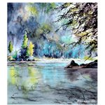 The river meanders quietly between the mountains towering above it, and its soft trickle dominates the silence of the forest. Salza River in Austria. My older #watercolor work. #art #paiting #nature #available