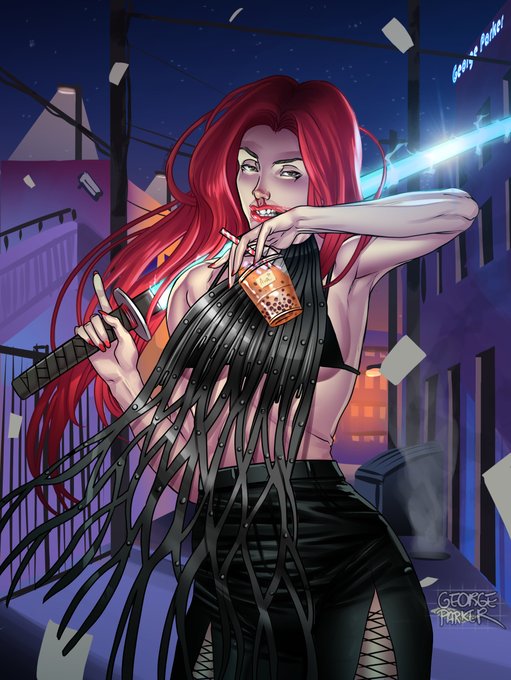 Here is my new #AvaMax #illustration i took inspiration in her Weapons music video and mixed up with my style, because girls with big ass swords. Is so fun to pratice ambient light. . #art #digitalart #bubbletea #katana #neon #artwork #artoftheday #myart