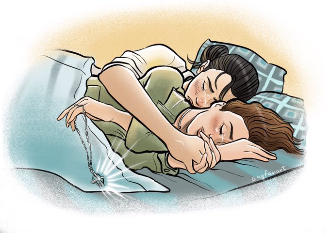 “After the little argument and the bad news we were so tired we slept in our clothes…For a moment I forgot how much I was hurting ‘cause Bea was so sweet with me that night..” #avatrice #warriornun #RenewWarriorNunS3 #albabaptista @TonteriYoung #savewarriornun #fanart #AVASILVA