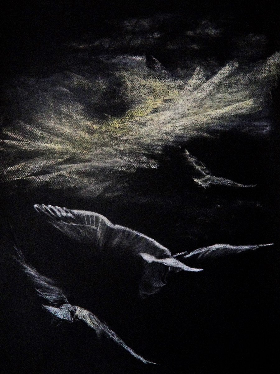 My 1'st attempt on a #flying #bird #sketch in #impressionistic style to convey some sort of movement... RACE TO HEAVEN #SoftPastel #chalk on #black #Fabriano #paper #seagulls #wildlife #aviary #animal #sky #illustration #Art #ArtIsMyTherapy #artph #illhueminati #BigArtBoost