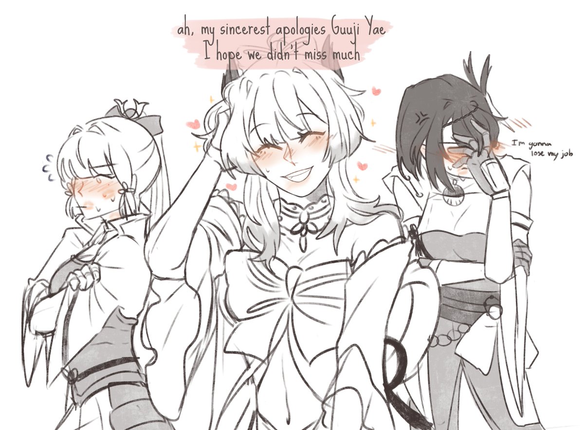 i took like a 3 hour break from drawing this to rewatch bloom into you #kokomi #kujousara #ayaka #kokosara #ayakoko #ayasara #ayakokosara