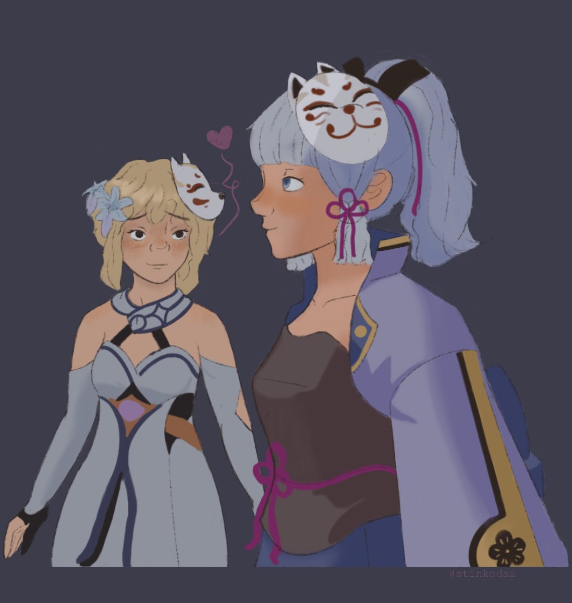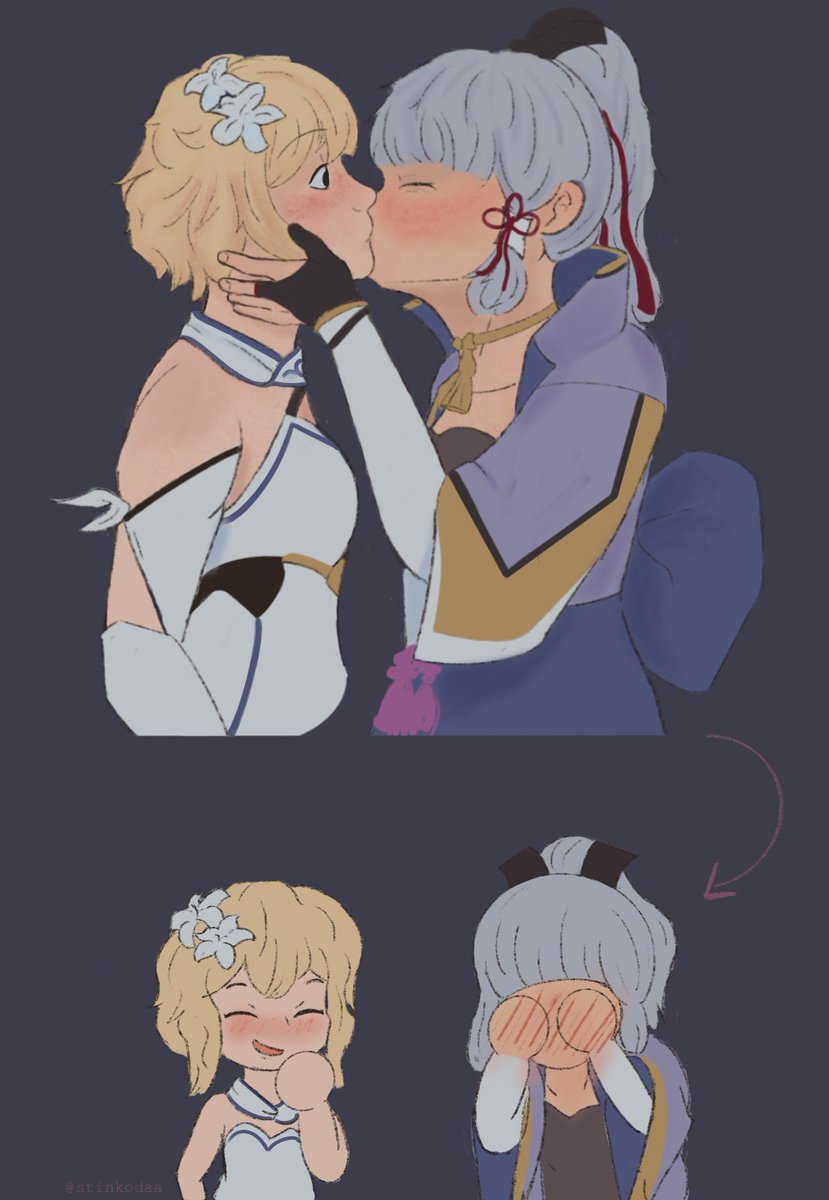 Kiss kiss fall in love 💕 #ayalumi #ayaka #lumine #Genshin #GenshinImapct #fanart #genshinimpactfanart