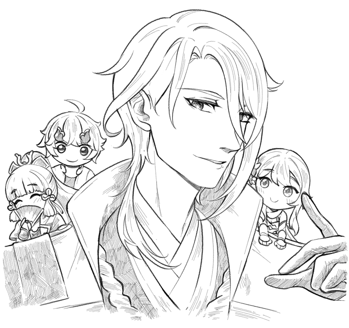 "OUR WIFE" yep....this is my main dps story 😂 anyway, let's pretend they're in teapot . . . #AyatoLumi #chilumi #ittolumi #lumine #GenshinImpact #FANART #childe #tartaglia #Ayato #Itto #綾人蛍 #タル蛍 #KamisatoAyato #aratakiitto