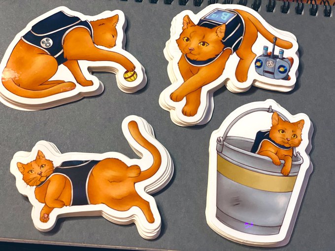 I made Stray stickers!!!! I love this game so much and wanted to draw Stray and B12. Also Stray in the bucket is my favorite ❤️🐱 #straygame #stray #B12 #fanart #straygameart