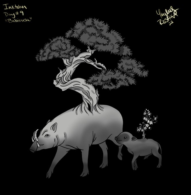🎃 INKTOBER 🎃 Day 9: Babirusa 🐗 Until studying for this #fauntober prompt on #instagram I had no idea that a babirusa is a deer-pig! My babirusa’s are also bonzai trees 🌳 . #Inktober #inktober2022 #artist #artwork #babirusa #animalart #digitalart #illustration #procreateart