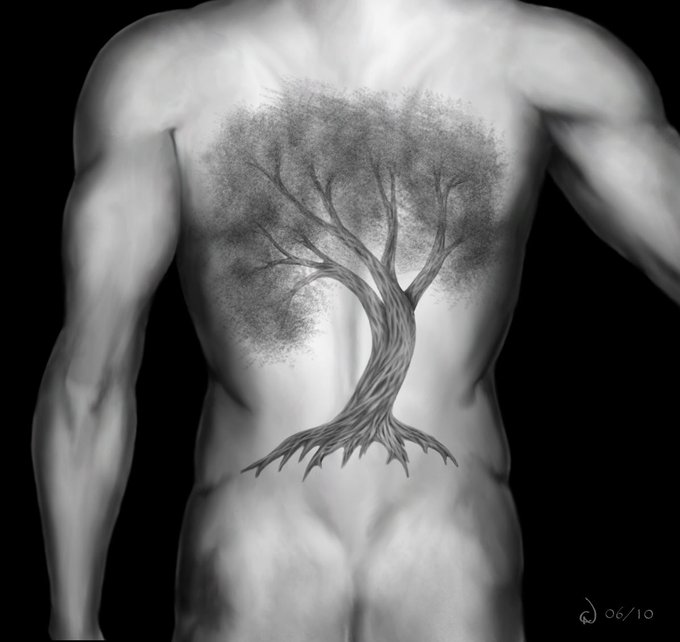 last week was super busy with Con prep and this week been sick, so have something from 2010 ^_^ #kittenpokercreations #back #digitalart #digitalpainting #digitalartwork #blackandwhite #Tree #tattoo #photoshop #oldart