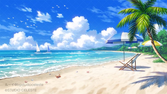 Summer ! 🦀🍹 #PortfolioDay #backgroundart HP>bg-studio-celeste.com BOOTH>studio-celeste.booth.pm