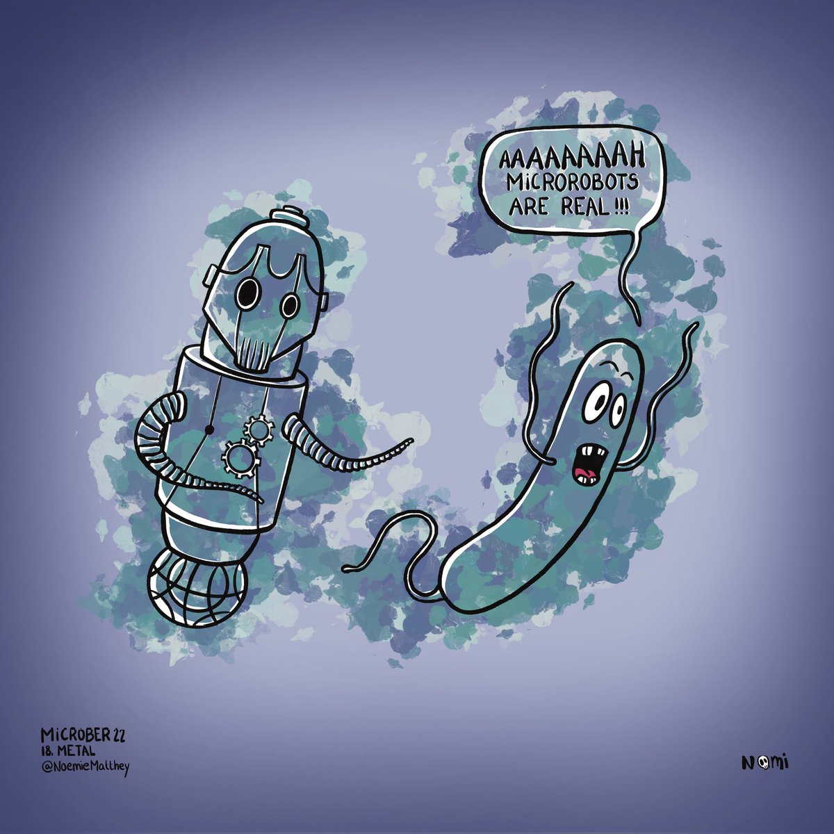 #Microber2022 18. Metal aaaaaAaaaaAAAh!! Microrobots are real! #inktober #comic #bacteria #sciart twitter.com/NoemieMatthe…