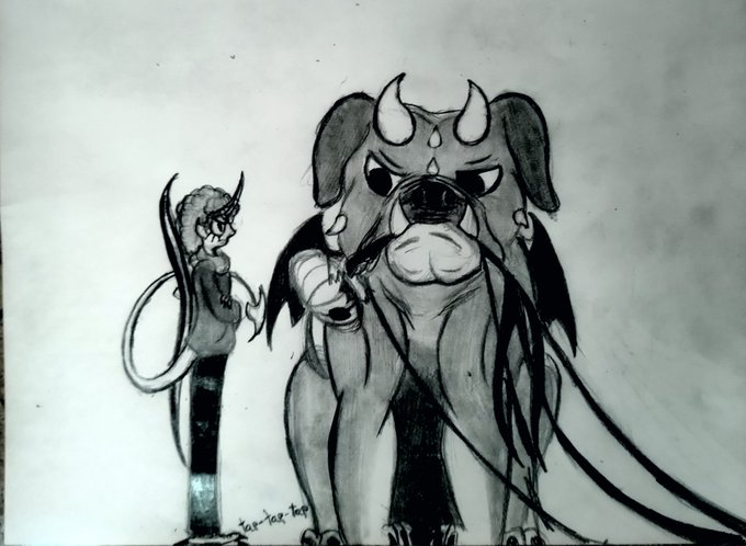 Día 21: BAD DOG Esa no es la ramita OC de compañia: el indiferente Dante y su perrito infernal, propiedad de Mateodibuja (Amino) #OC #traditionalart #dibujoalapiz #drawing #draw #dibujo #Inktober #inktober22 #baddog