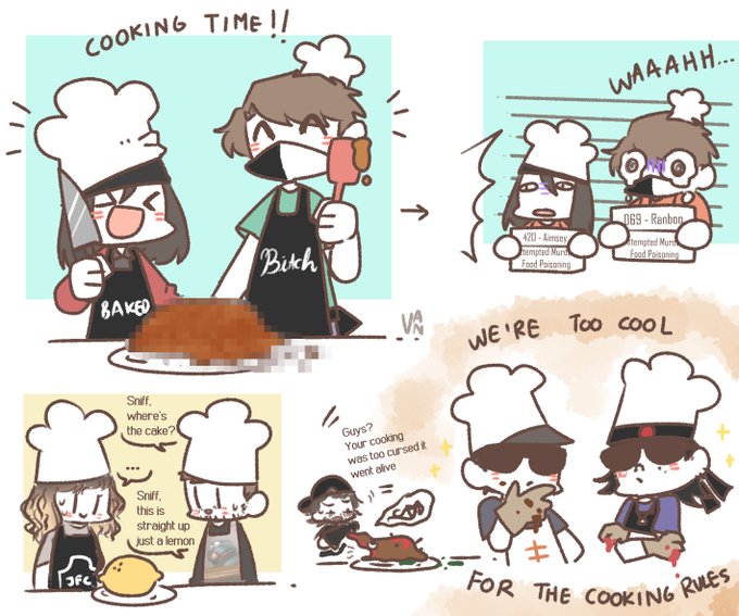 I guess they went misfits on the cooking huh [bunch of doodles I did based on the baking video! :D] #aimseyfanart #ranboofanart #billzofanart #badlinufanart #seapeekayfanart #snifferishfanart
