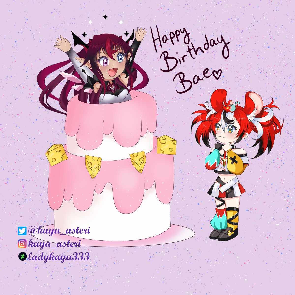 Happy Birthday Bae! Your wife brings you cake and her love. . . . #illustrayBAE #baerats #IRySart #irys #hololive #fanart #kaya_asteri #clipstudiopaint #artistsontwitter #chibi #birthday #Baerys