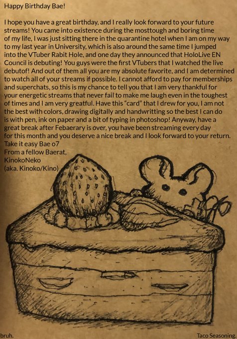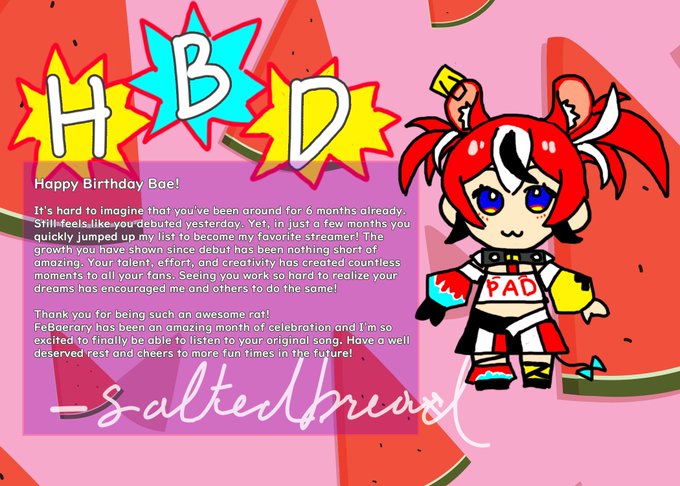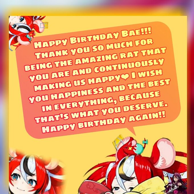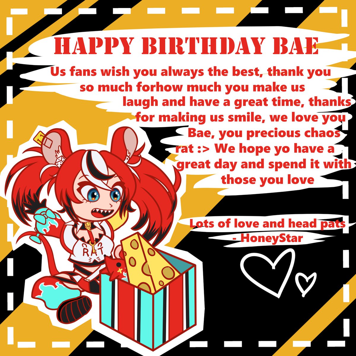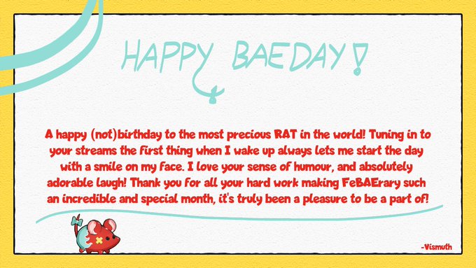 Happy non-birthday day! A giant happy birthday card from the Bae's Fan Club Discord server for the best rat! Thank you for the last 6 months and we look forward to many more! #BAETHDAYBASH #illustrayBAE #feBAErary #ItsNotBaesBday