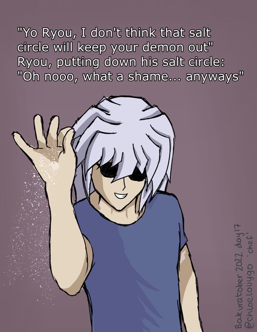 #Bakuratober2022 day 17 - Chef and #Inktober day 17 - Salty Ryou isn’t trying all that hard to get rid of his demon (I can’t blame him I wouldn’t try to get rid of YamiB either) #bakuratober #ryoubakura #bakuraryou #yugioh #ygo #inktoberday17 #bakura #memeredraw