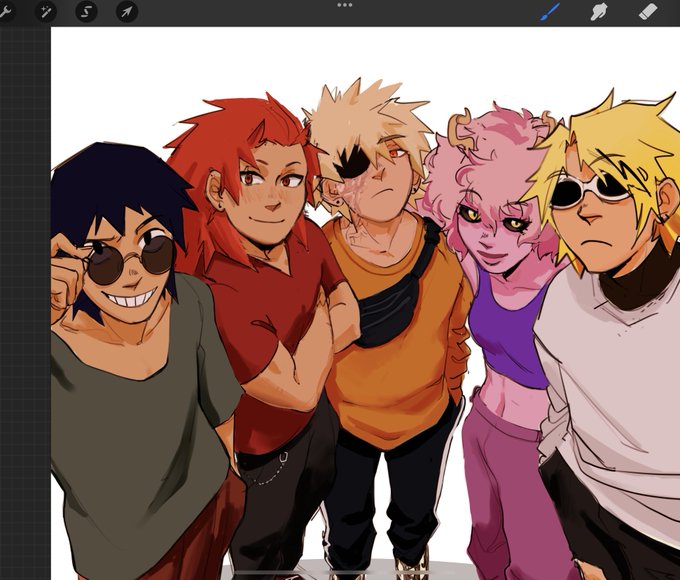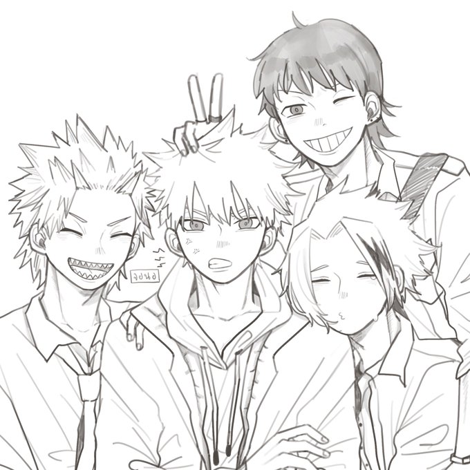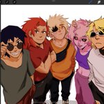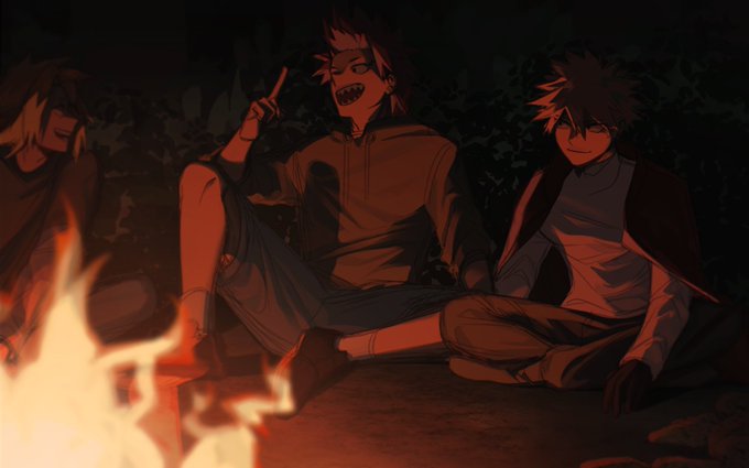Peaceful #bakusquad painting. There can never be enough of fluffy krbk moments (Btw this is a repaint of an old piece of mine, in case it seems familiar) #krbk #krbkfanart #myheroacademia #BakugoKatsuki #kirishimaeijiro #minaashido #serohanta #kaminaridenki